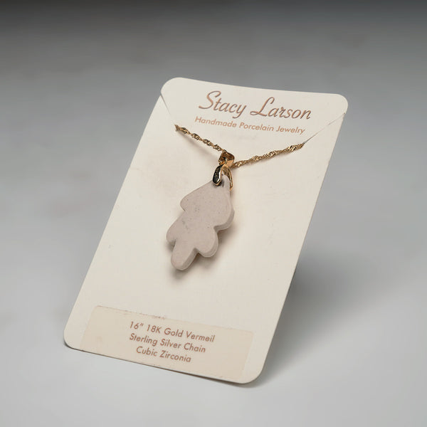 porcelain, gold luster, 18K gold plated sterling silver chain, cubic zirconia